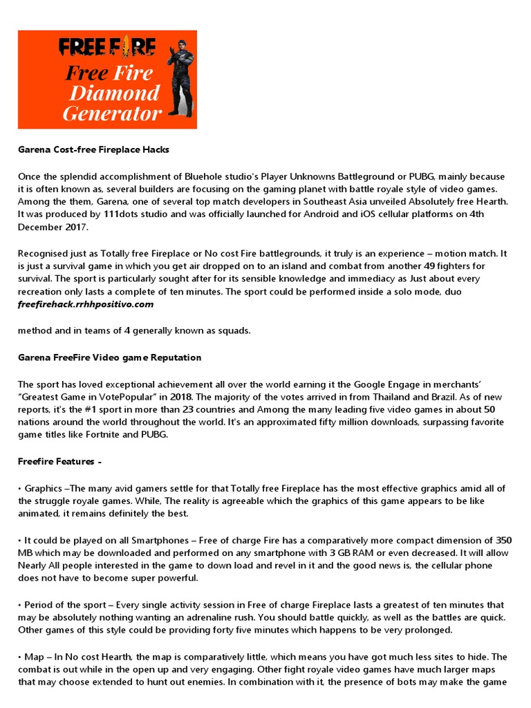 This game is available on any android phone above version 4.0 and on ios up to 50 players can be included in free fire. Here is finally garena free fire hack generator! But don't hack because after some u will be banned and after getting banned you cannot play free fire. Garena free fire has been very popular with battle royale fans. With the introduction of video games like pubg, this entire because a lot of the moment, you will certainly be running and also staying clear of well, that ends our garena free fire hack as well as methods.